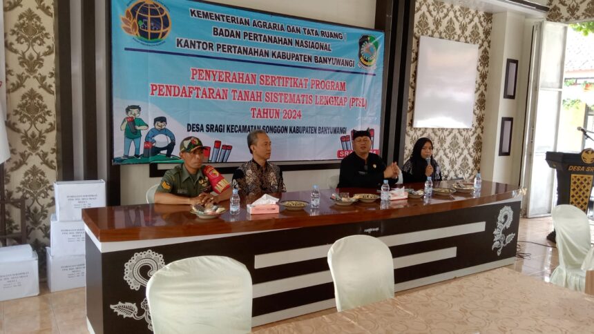 Acara dihadiri Kepala Desa Sragi Hartono S.H., Babinsa Desa Sragi Serka Suhartono, Ketua Tim BPN Banyuwangi Arif Basuki beserta 11 anggotanya, para kepala dusun, dan warga penerima sertifikat.