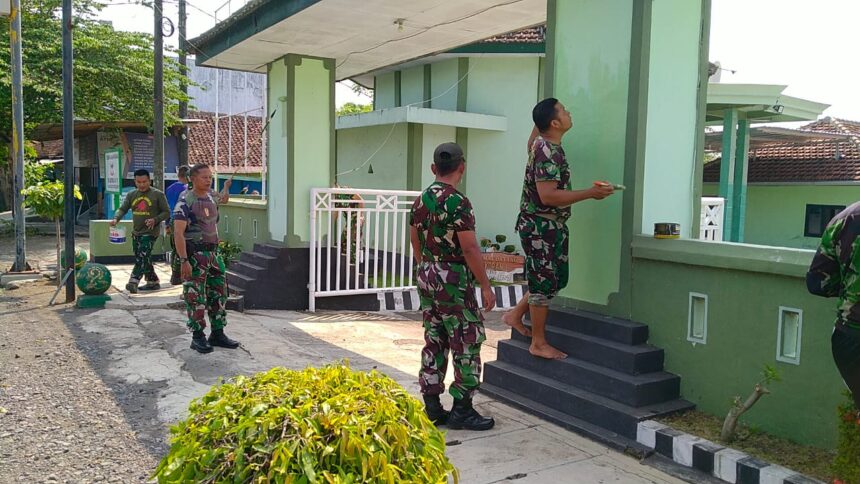 Pengecatan dilakukan oleh seluruh personil Koramil 0825-12/Rogojampi Apel Pagi dengan pengawasan langsung Danramil, Kapten Cba Guntur.
