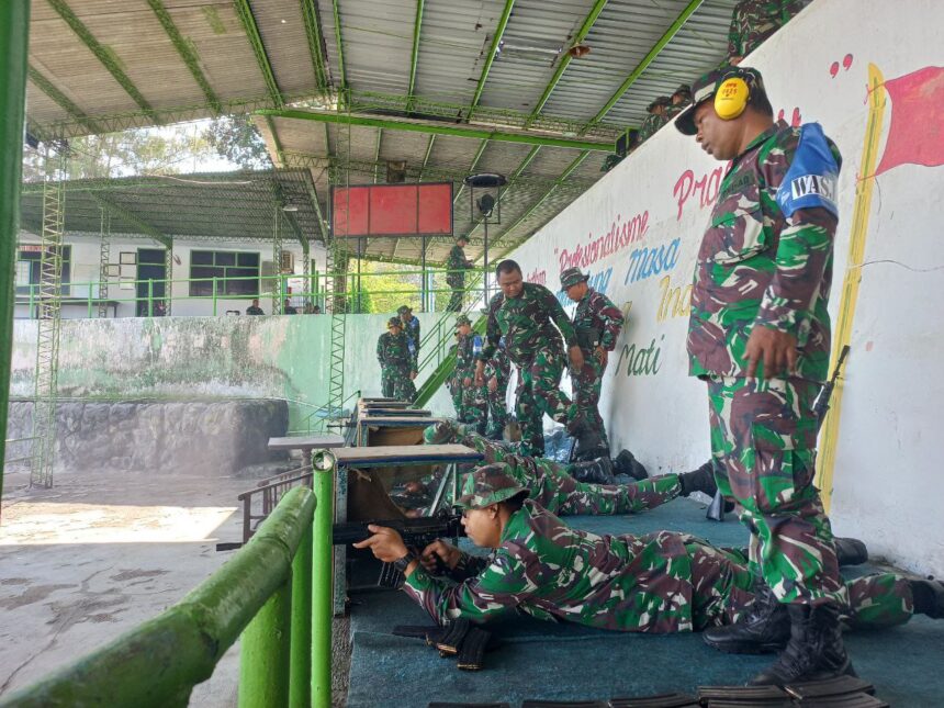 Lettu Inf Deni Suyitno Pasiops menyampaikan, Latihan yang digelar hari ini merupakan upaya Komando Atas untuk terus mengasah kemampuan para prajurit khususnya dalam hal menembak.