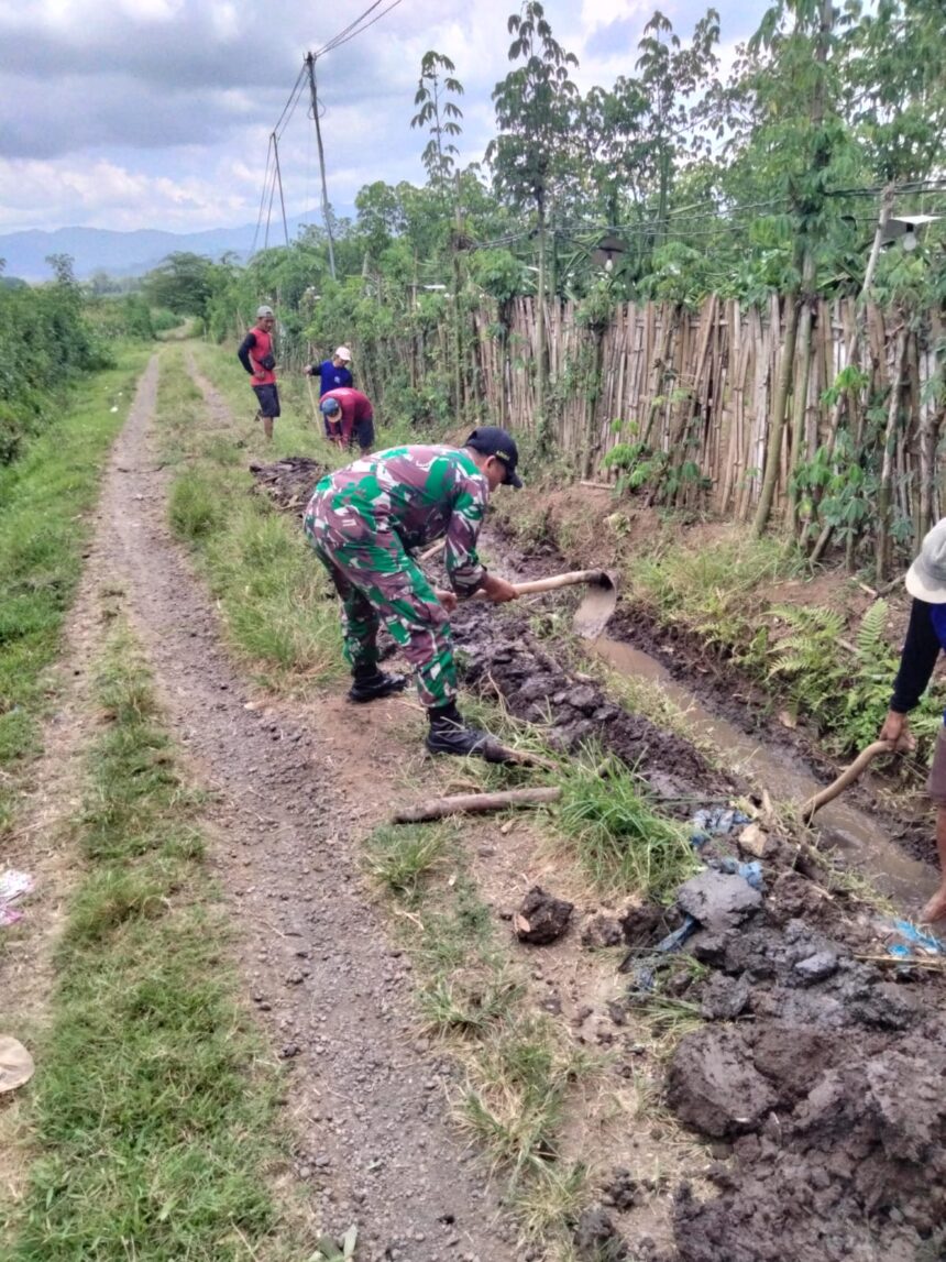 “Saya berharap dengan kehadiran saya ini bisa membuat warga tambah semangat dalam melaksanakan kerja bakti” ucap Babinsa Desa Karangmulyo Sertu Ahmad Imam Baihaki