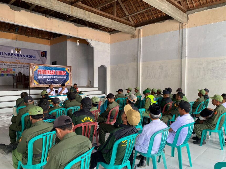 Joosnews.com – Bangorejo, Babinsa Desa Sambimulyo, Sertu Sunarto, melaksanakan kegiatan pembinaan Linmas dan pendampingan untuk tingkatkan kesiapsiagaan Desa, bertempat di Balai Desa Sambimulyo. Kegiatan ini bertujuan untuk meningkatkan kapasitas Linmas dalam menghadapi berbagai situasi darurat serta memperkuat kerjasama antara aparat desa dan masyarakat dalam menjaga ketertiban dan keselamatan desa.