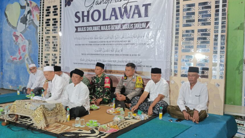 Joosnews.com – Genteng, 29 Mei 2025** — Dalam upaya mempererat hubungan antara TNI dan masyarakat serta memperkuat sinergi lintas elemen, Babinsa Genteng Kulon, Koptu Wawan, menghadiri kegiatan Majlis Sholawat, Dzikir, dan Ta’lim bertajuk *Gandrung Shalawat* yang diselenggarakan oleh Pondok Pesantren Tahfidz Al-Mubarok bersama warga Dusun Sawahan, Desa Genteng Kulon, Kecamatan Genteng.