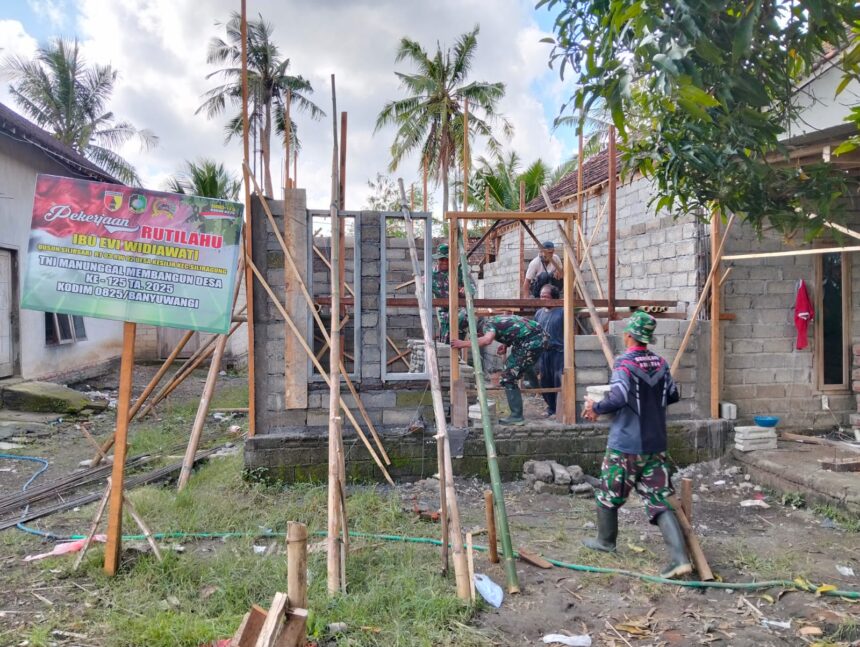 Joosnews.com – Banyuwangi, Pra TMMD ke-125 Kodim 0825/Banyuwangi terus menunjukkan progres pembangunan yang signifikan. Pada Minggu (13 Juli 2025), para Babinsa dengan semangat gotong royong bersama warga mengangkat batako untuk membangun Rumah Tidak Layak Huni (Rutilahu) di wilayah Kecamatan Siliragung, Kabupaten Banyuwangi.