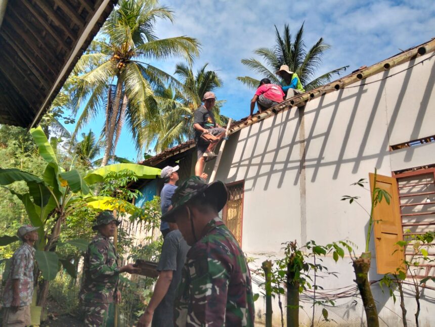 Joos News > Kodim > Babinsa Kodim Banyuwangi Gotong Royong Turunkan Genteng Rutilahu di Siliragung