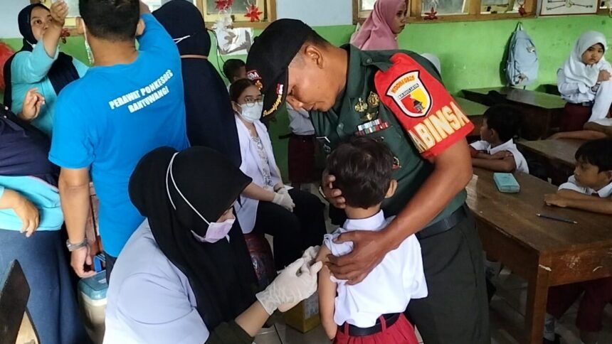 Joosnews.com – Serka Arif Hadi Mintoyo Babinsa Koramil 0825/07 Cluring memberikan pendampingan program Bulan Imunisasi Anak Sekolah (BIAS) dalam upaya mendukung program kesehatan anak yang dilakukan di SDN 1 Cluring Kec. Cluring Kab. Banyuwangi (3/09).