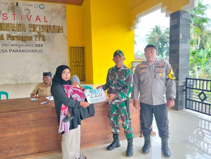 Joosnews.com – Songgon, Babinsa Koramil 0825/20 Songgon, Sertu Sudarto, aktif melakukan pendampingan dalam kegiatan penyaluran Bantuan Langsung Tunai Dana Desa (BLT DD) untuk bulan April 2024 yang dilaksanakan di Balai Desa Parangharjo, Kecamatan Songgon, Senin (14/4/2025).