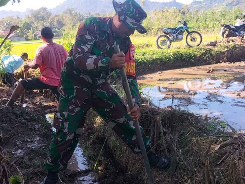 Seperti yang dilakukan Babinsa Koramil 0825-11/Pesanggaran Kodim 0825/Banyuwangi Serda Nurhidayanto dan Babhinkatibmas Polsek Pesanggaran Bripka Nur Kholis bersama dengan masyarakat Desa Kandangan, Kecamatan Pesanggaran, Kabupaten Banyuwangi. Dengan niat yang tulus dan ikhlas untuk membantu petani di wilayah binaannya, dirinya rela terjun ke dalam parit untuk membersihkan saluran air di area persawahan.