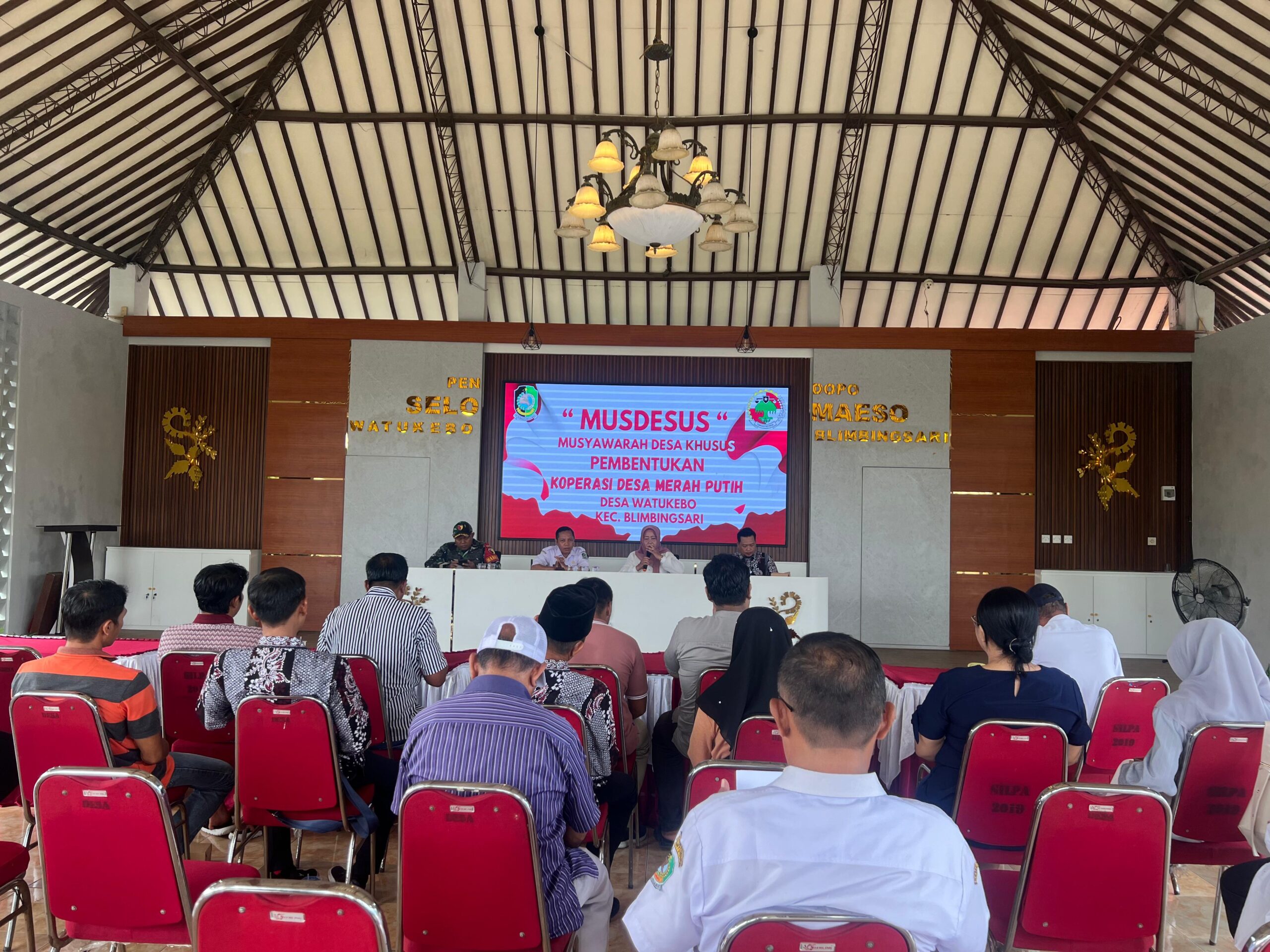 Acara diawali dengan pembukaan dan menyanyikan lagu Indonesia Raya, dilanjutkan dengan sambutan dari Kepala Desa Watukebo dan Kasi PMK Kecamatan Blimbingsari. Agenda utama dalam musyawarah ini adalah pembentukan anggota koperasi, yang diharapkan dapat menjadi wadah bagi pengembangan usaha mikro, kecil, dan menengah (UMKM) di Desa Watukebo.