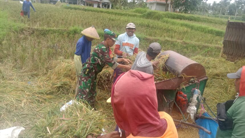 Joosnews.com – Songong, Babinsa Koramil Songgon bersama petugas Bulog melakukan pendampingan serapan gabah petani di Desa Songgon, Banyuwangi, pada Senin (3/3/2025). Kegiatan ini dilaksanakan sebagai upaya memperkuat ketahanan pangan sekaligus memastikan kesejahteraan petani melalui penyerapan hasil panen secara langsung di lokasi sawah.