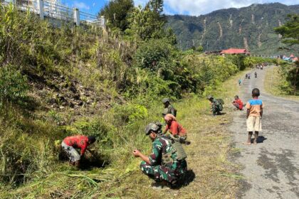Satgas Yonif 509 Kostrad Bersama Masyarakat Kampung Mamba Intan Jaya Papua Gelar Kerja Bakti Menjelang 17 Agustus
