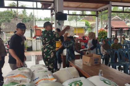 Babinsa Koramil 0825/03 Glagah Secara Produktif Dampingi Penyaluran Bantuan Pangan untuk 3.222 Warga