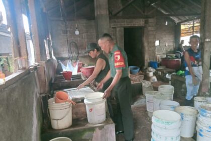 Tinjau Pengolahan Kedelai, Babinsa Koramil 0825/14 Kabat Kunjungi Produksi Tahu