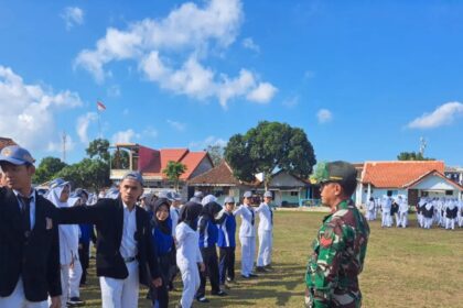 Tanamkan Disiplin, Babinsa Posramil 0825/22 Licin Latih PBB Siswa SMPN 1 Licin