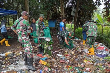 Aksi Produktif Kodim 0825/Banyuwangi Bersama Sungai Watch Bersihkan Sampah di Sungai Alas Malang