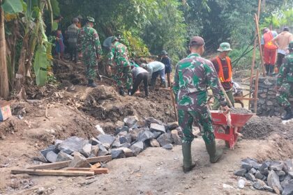 Gotong Royong Produktif, Babinsa Kebondalem dan Dinas Pengairan Perbaiki Tanggul Jebol di Sendangrejo
