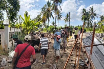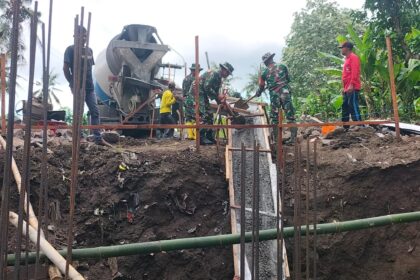 Babinsa Kodim 0825/Banyuwangi Produktif Laksanakan Pengecoran Jembatan Penghubung dalam Persiapan TMMD 125