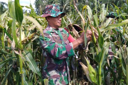 Sukseskan Program Ketahanan Pangan Babinsa Bantu Petani Panen Jagung