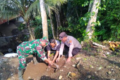 Danramil 0825-16/ Glenmore berkolaborasi bersama Forpimka dan Instansi terkaid dalam kegiatan Tanam 100 Pohon Produktif di Lereng Sungai Kalitakir