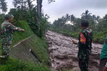 Songgon - Tim Koramil 0825/20 Songgon melaksanakan kegiatan monitoring peningkatan debit air…