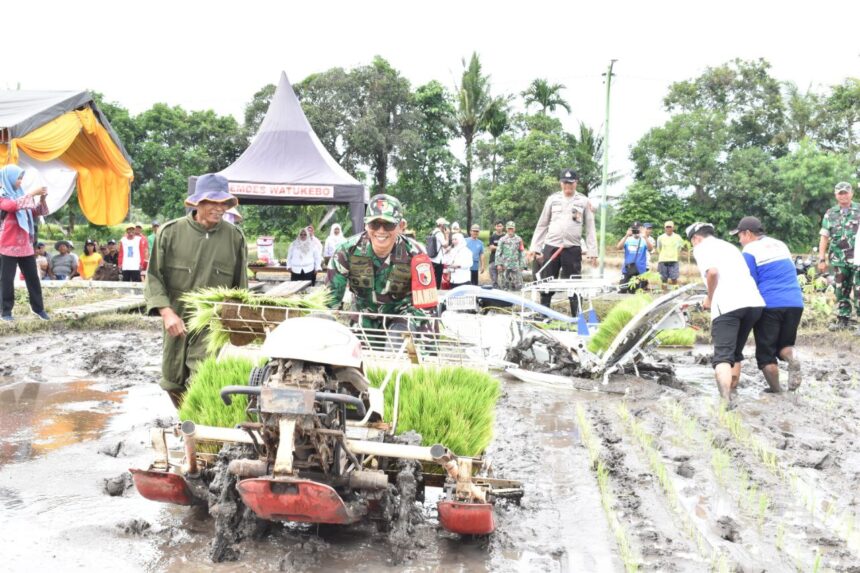 Joosnews.com – Banyuwangi, Dalam upaya mendukung ketahanan pangan nasional, Kodim 0825 Banyuwangi bersama Dinas Pertanian dan Pangan Kabupaten Banyuwangi menggelar kegiatan tanam padi bersama di Dusun Gepuro Desa Watukebo Kecamatan Blimbingsari. (Rabu, 22/01/2025)