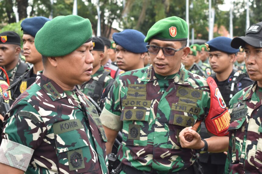 Joosnews.com – Banyuwangi, Dalam rangka menyukseskan kunjungan kerja Wakil Presiden Republik Indonesia, Gibran Rakabuming Raka, Letkol Arh Joko Sukoyo, S.Sos., M.Han., selaku Dandim 0825/Banyuwangi, turut mendampingi Danrem 083/Baladhika Jaya Kolonel Inf Kohir dalam pelaksanaan Apel Gelar Pasukan Pengamanan VVIP di wilayah Provinsi Jawa Timur, yang dilaksanakan secara PRODUKTIF di Taman Blambangan, Banyuwangi, pada Minggu (22/06/2025).