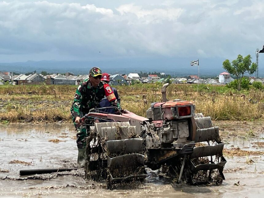 Dengan menggunakan hand traktor, Dandim dan para petani bahu-membahu mengolah lahan pertanian. Kegiatan ini tidak hanya sekadar membantu petani, tetapi juga menjadi wujud nyata sinergi antara TNI dan masyarakat dalam mewujudkan ketahanan pangan nasional.