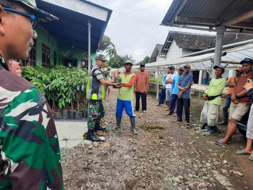 Joosnews.com – Gambiran – Komandan Rayon Militer (Danramil) 0825/06 Gambiran, Kapten Inf. Sumitro Pujatmiko, SE, secara langsung menyerahkan bantuan ribuan bibit durian unggul kepada Kelompok Tani (Poktan) Citarum Desa Gambiran. Penyerahan bantuan ini merupakan bagian dari program ketahanan pangan serta upaya peningkatan kesejahteraan petani. Sabtu, 28-06-2025