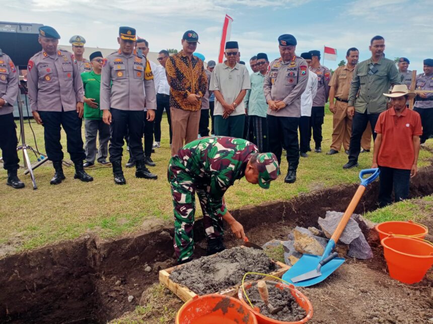 Danramil 0825/17 Muncar Kapten Inf Sabar Wiyono Hadiri Giat Peletakan Batu Pertama Pembangunan Gedung Aula Kompi 4 Batalyon V Pelopor Satbrimob Polda Jatim