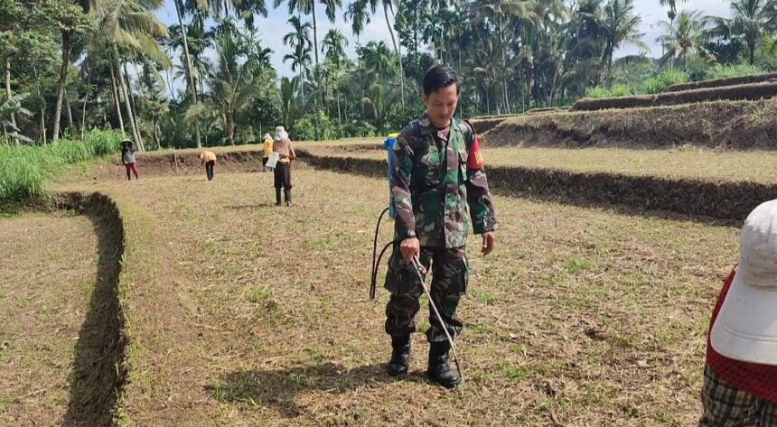 Adapun upaya Babinsa untuk melakukan pendampingan terhadap para petani di wilayah binaan secara rutin, salah satunya dengan membantu dalam penanaman tanaman padi.