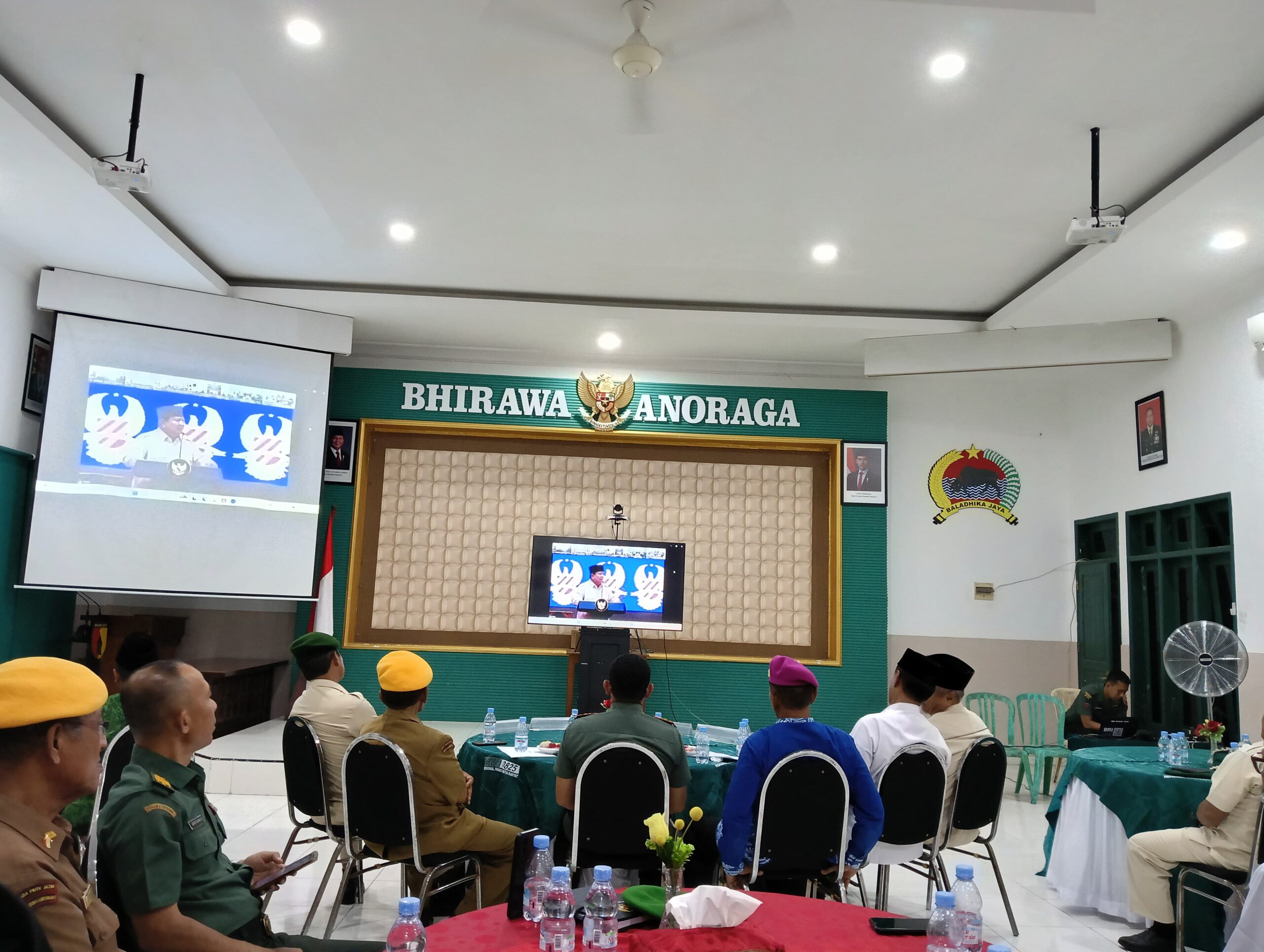 Jooanews.com – Banyuwangi, Kodim 0825/Banyuwangi turut serta dalam kegiatan Halal Bihalal Presiden Republik Indonesia bersama Purnawirawan TNI-AD dan Keluarga Besar TNI-POLRI Tahun 1446 Hijriah/2025 M yang diselenggarakan secara virtual (video conference). Kegiatan ini dilaksanakan pada hari Selasa, 6 Mei 2025, bertempat di Aula Panglima Sudirman Makodim 0825/Banyuwangi, Jalan RA Kartini Nomor 02 Kepatihan, Kabupaten Banyuwangi.