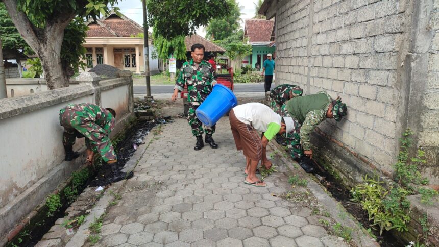 sebagai penggerak masyarakat Koramil Purwoharjo mengajak masyarakat untuk menjaga kebersihan lingkungan terutama pada saluran selokan maupun irigasi.