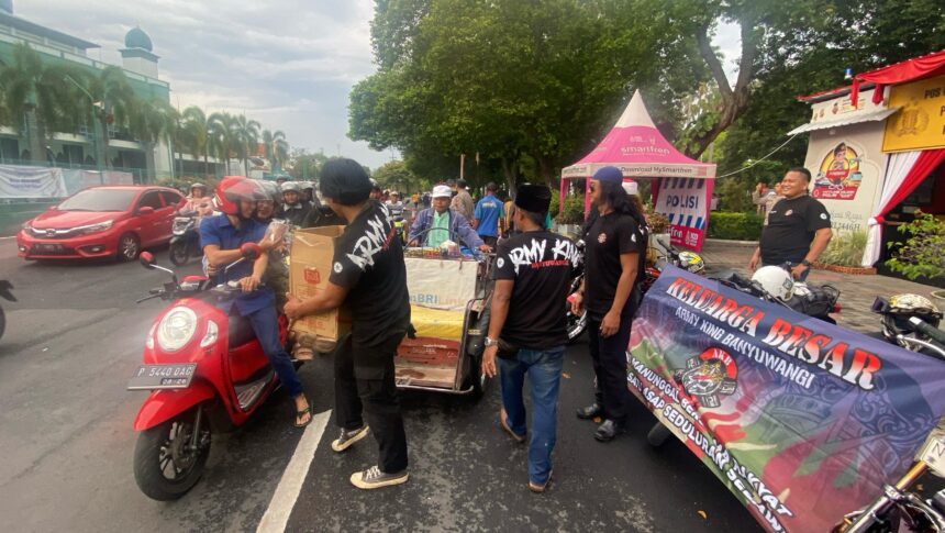 Aksi dimulai pukul 15.30 WIB dengan berkumpulnya anggota komunitas di depan Taman Sritanjung. Mereka membawa spanduk dan banner bertuliskan *“TNI Manunggal Bersama Rakyat”* dan *“Seduluran Selamawase”* (Persaudaraan Abadi), yang menegaskan dukungan terhadap sinergi TNI dan masyarakat. Koordinator lapangan, Sdr. Piko, menyatakan bahwa kegiatan ini merupakan bentuk kepedulian komunitas terhadap pembangunan nasional. **“Kami mendukung revisi UU TNI karena kami percaya TNI harus semakin dekat dengan rakyat,”** ujarnya.