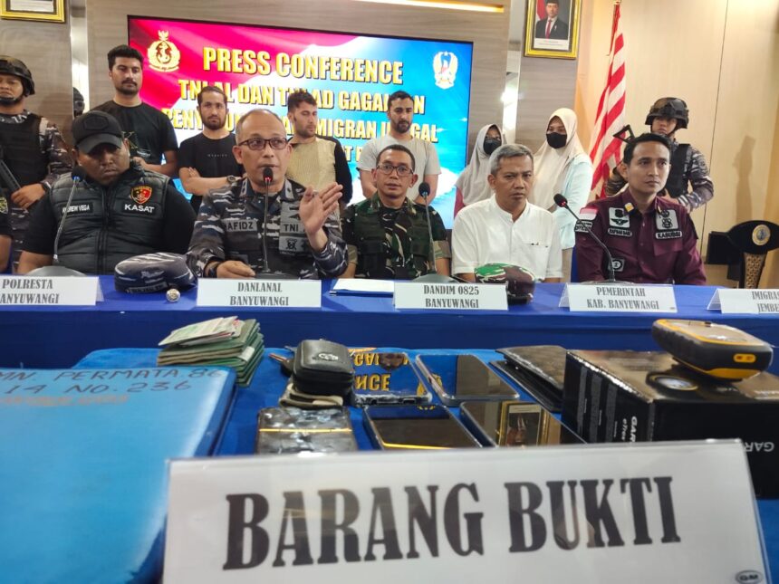 Joosnews.com – Banyuwangi, Tim gabungan dari Pangkalan TNI AL (Lanal) dan Kodim 0825 Banyuwangi mengamankan 17 Warga Negara Asing (WNA) asal Pakistan pada Sabtu (9/11/2024). Para WNA tersebut diduga akan melakukan perjalanan menuju Pulau Christmas yang berada di perbatasan Indonesia dan Australia.