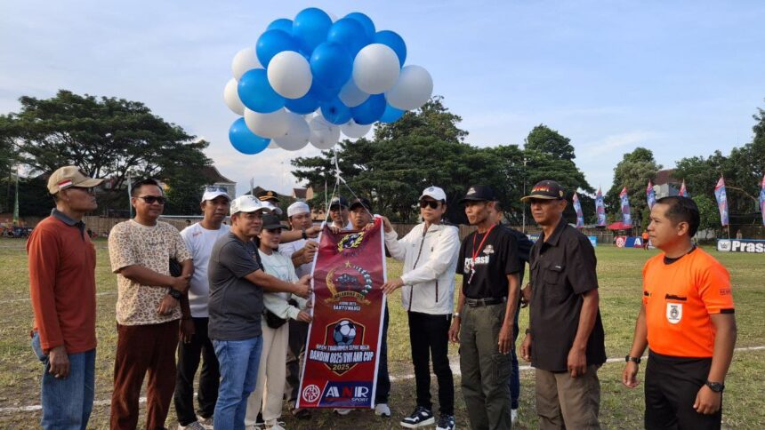Simbolisasi pembukaan turnamen Dandim Cup 2025 dilakukan melalui seremoni kick-off dan pelepasan balon berhiaskan banner turnamen oleh Kasdim 0825 Banyuwangi, didampingi oleh jajaran Forkopimda yang hadir.