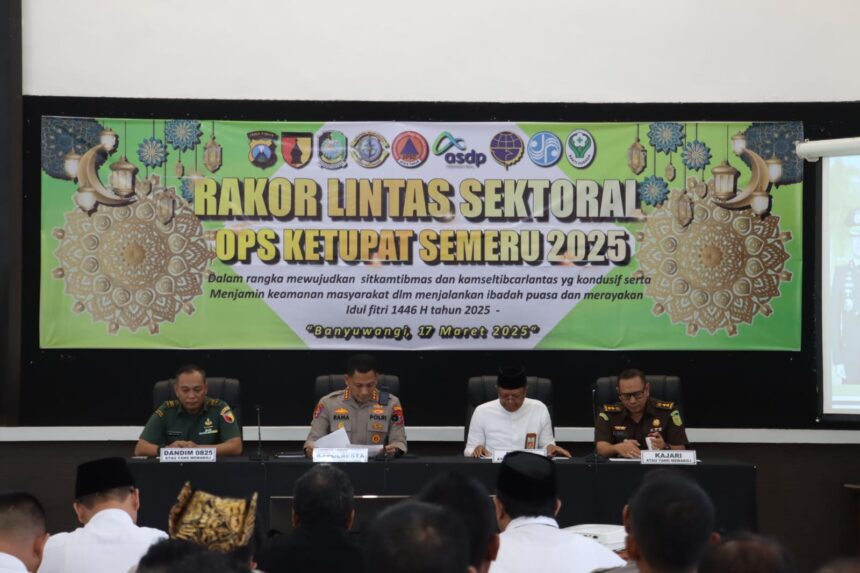 Joosnews.com – Banyuwangi, Dalam rangka mewujudkan situasi keamanan dan ketertiban masyarakat (Sitkamtibmas) serta keamanan, keselamatan, ketertiban, dan kelancaran lalu lintas (Kamseltibcarlantas) yang kondusif, serta menjamin keamanan masyarakat dalam menjalankan ibadah puasa dan merayakan Idul Fitri 1446 H/2025 M, Perwira Seksi Operasi (Pasiops) Kodim 0825/Banyuwangi, Lettu Inf Deni Suyitno, menghadiri Rapat Koordinasi (Rakor) Lintas Sektoral Operasi Ketupat Semeru 2025. Kegiatan ini berlangsung di Mapolresta Banyuwangi, Senin (17/03/2025).