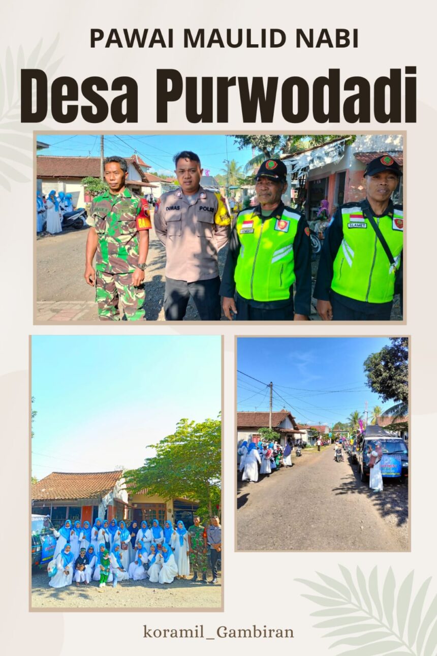 Joosnews.com – Gambiran – Suasana khidmat dan penuh suka cita menyelimuti Desa Purwodadi Kec. Gambiran dalam rangka peringatan Maulid Nabi Muhammad SAW. Puncak acara adalah pawai akbar yang diikuti oleh berbagai elemen masyarakat, mulai dari anak-anak, remaja, hingga orang tua.