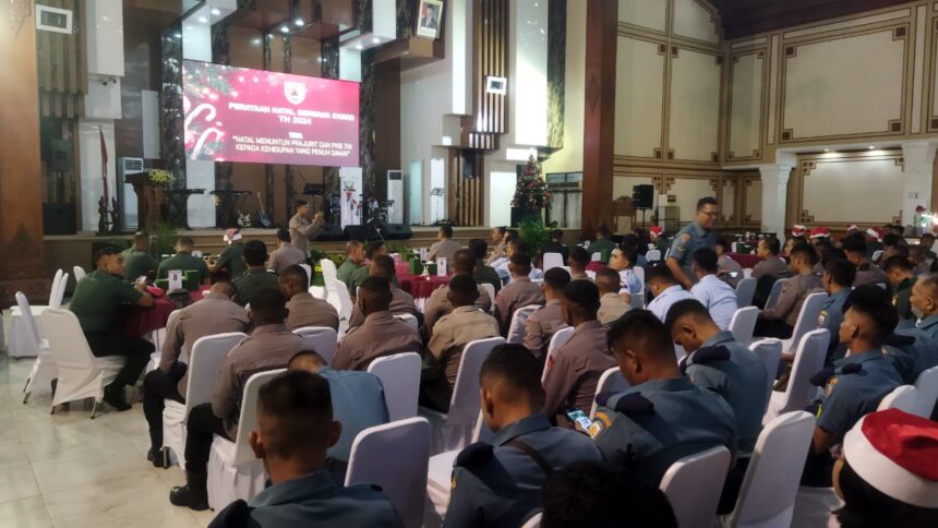 Joosnews.com – Dalam rangka merayakan Natal 2024, Kodim 0825/Banyuwangi turut berpartisipasi dalam kegiatan Perayaan Natal bersama Kasad yang dilaksanakan pada hari Selasa, 7 Januari 2025 di Aula Balai Prajurit Kodam V Brawijaya. Kegiatan yang berlangsung dengan tema “Natal Menuntun Prajurit dan PNS TNI Kepada Kehidupan yang Penuh Damai” ini dimulai pada pukul 09.30 WIB dan berlangsung hingga pukul 11.00 WIB, serta dilanjutkan pada pukul 12.30 WIB dengan Natal Virtual bersama Kasad. (Banyuwangi, 7/1/2025)
