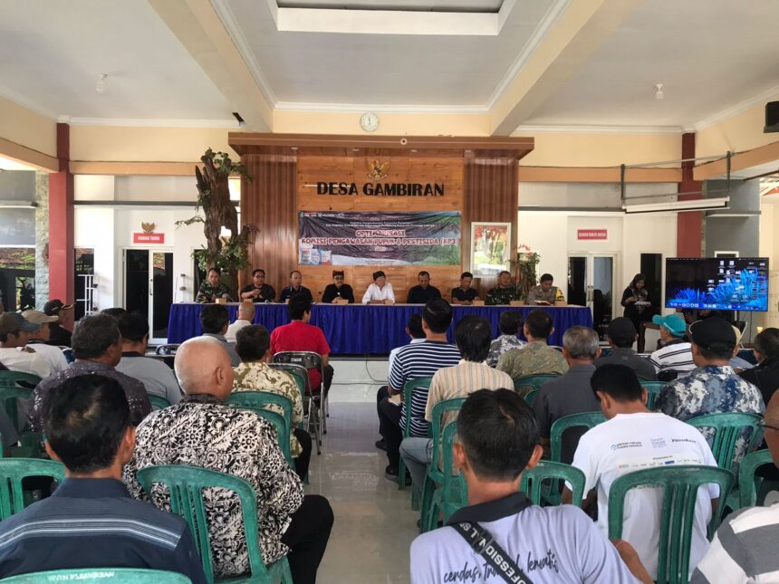 Joosnews.com – Gambiran, Dalam upaya mendukung ketersediaan pangan dan meningkatkan kesejahteraan petani, personel Koramil 0825/06 Gambiran bersama Balai Penyuluh Pertanian aktif mengikuti kegiatan penyuluhan penyaluran pupuk yang diselenggarakan di Balai Desa Gambiran. Kegiatan ini diikuti oleh 40 Orang dari perwakilan kelompok tani dari berbagai desa di wilayah Kecamatan Gambiran.(Senin,28/10/2024)