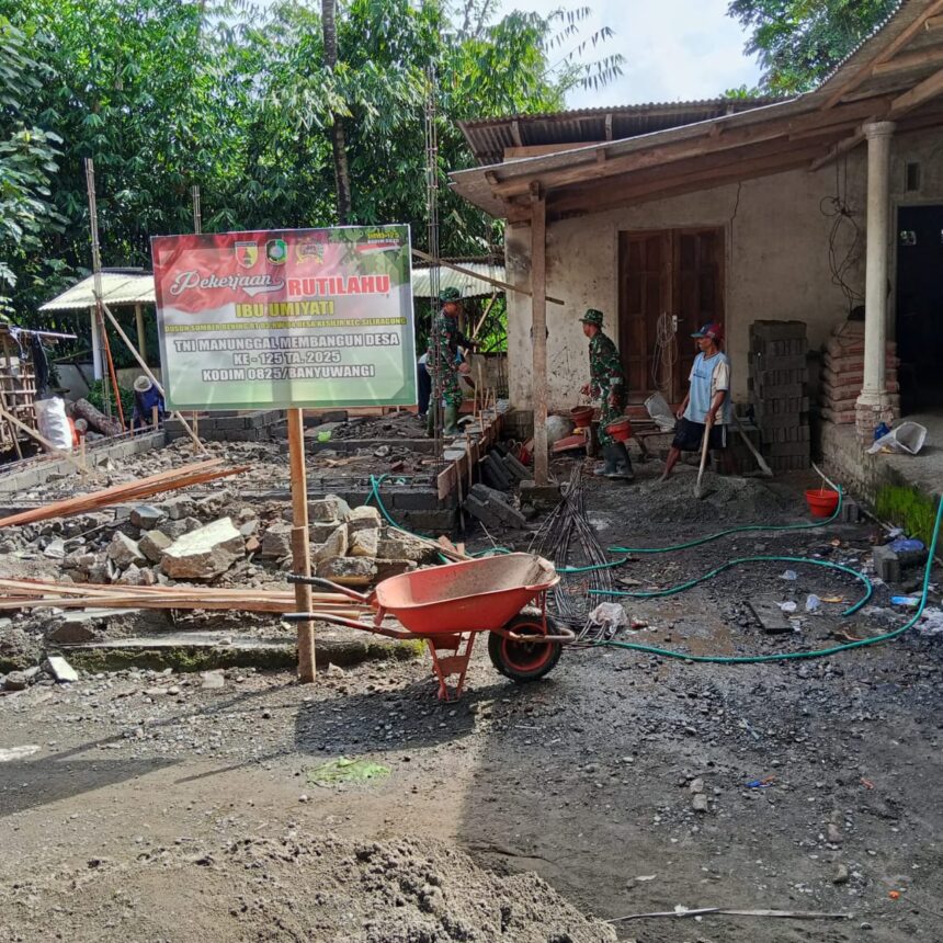Joosnews.com – Banyuwangi, Pra TNI Manunggal Membangun Desa (TMMD) ke-125 Kodim 0825/Banyuwangi terus menunjukkan progres signifikan. Pada Selasa (2/7), personel TNI bersama warga masyarakat melaksanakan pengecoran Rumah Tidak Layak Huni (Rutilahu) di Kecamatan Siliragung, Kabupaten Banyuwangi. Kegiatan ini menjadi bagian dari rangkaian sasaran fisik TMMD yang menyasar langsung kebutuhan dasar masyarakat. Siliragung, 2 Juli 2025