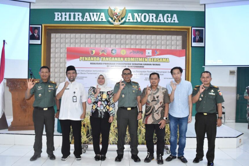 Dandim 0825/Banyuwangi Letkol Arh Joko Sukoyo, S.Sos.M.Han. menyampaikan pentingnya sinergi antara berbagai pihak untuk mempercepat serapan gabah di wilayah Kabupaten Banyuwangi. Hal ini bertujuan untuk menjaga stabilitas harga gabah dan kesejahteraan petani.