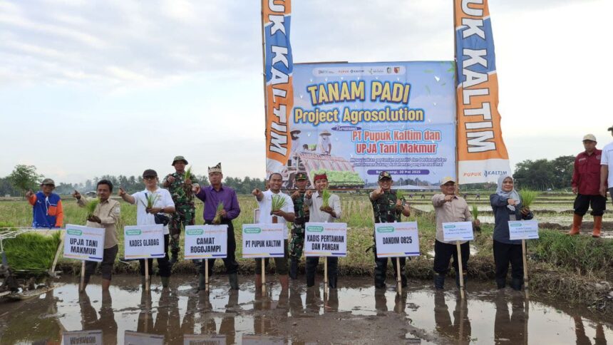 Joosnews.com – Banyuwangi, Upaya penguatan ketahanan pangan lokal di Banyuwangi semakin nyata dengan dimulainya kegiatan “Tanam Padi Project Agrosolution” di Desa Gladag, Kecamatan Rogojampi. Acara ini merupakan kolaborasi strategis antara PT Pupuk Kaltim, Kelompok Tani Makmur (UPJA Tani Makmur), dan dukungan penuh dari Komando Distrik Militer (Kodim) 0825 Banyuwangi. Selasa (20/05/2025).