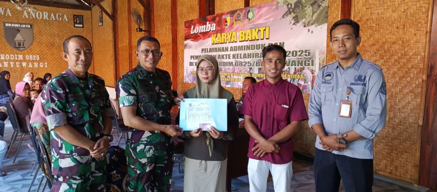 Joosnews.com – Banyuwangi, Kodim 0825 Banyuwangi berkolaborasi dengan Dinas Kependudukan dan Pencatatan Sipil (Disdukcapil) Kabupaten Banyuwangi menggelar pelayanan administrasi kependudukan (Adminduk) terpadu bagi masyarakat yang belum memiliki akta kelahiran, Kartu Tanda Penduduk (KTP), Kartu Keluarga (KK) dan Kartu Identitas Anak (KIA) serta Akte Kematrian.Kegiatan ini merupakan rangkaian Karya Bakti TNI Pelayanan Adminduk dan Pembuatan Akte Kelahiran TA. 2025 di wilayah Kodim 0825 Banyuwangi.Kegiatan tersebar di seluruh Wilayah Koramil 0825 Banyuwangi yang saat ini dilaksanakan di Aula terbuka Jenderal Sudirman Makodim 0825 Banyuwangi ini disambut antusias oleh warga.(Jumat, 25/04/2025)