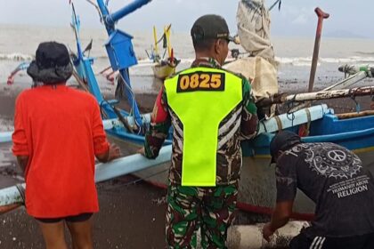 Sertu Hudori Babinsa Blimbingsari Sisir Pantai dan Himbau Nelayan Bantu Temukan Korban Tragedi KMP Tunu Pratama Jaya
