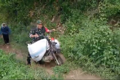 Posramil 0825/22 Licin Bantu Angkut Gabah ke Lumbung Padi di Dusun Krajan Barat