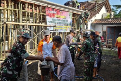 Melalui Karya Bakti TNI Babinsa Bersama Masyarakat Wujudkan Impian Rumah Layak Huni bagi Keluarga Bapak Katirin di Desa Sidorejo Kecamatan Purwoharjo