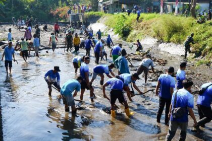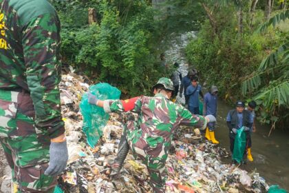 Koramil 0825/19 Sempu Turun Langsung Bersama Tim Sungai Watch Bersihkan Aliran Sungai di Desa Gendoh