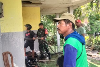 Aksi Cepat Babinsa Tambakrejo Serda Sigit Purnomo dalam Bantu Padamkan Api Rumah Warga di Dusun Curah Pacul, Desa Tambakrejo, Kecamatan Muncar