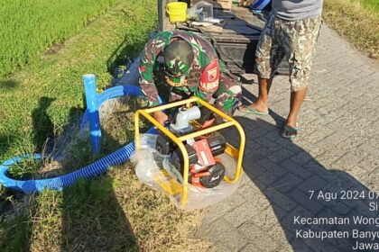 Joosnews.com - Babinsa Koramil 0825/15 Wongsorejo melaksanakan pendampingan mengairi padi, di Desa…