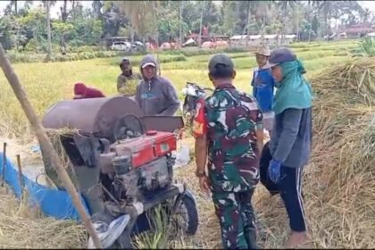 Joosnews.com - Glagah, Serka Moh Rojikin dari TNI melaksanakan pendampingan panen padi…