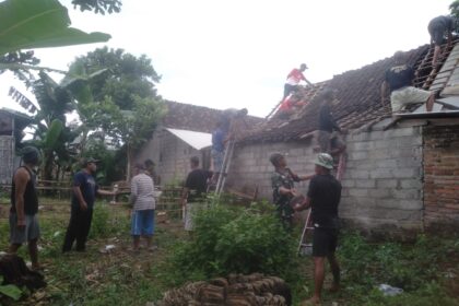 Babinsa Desa Bubuk Kerja Bakti Membenahi Rumah Warga di Desa Binaan